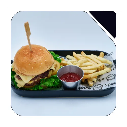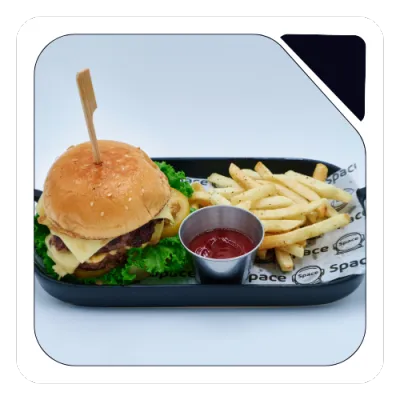 Description: Two juicy beef patties with toppings and fries.